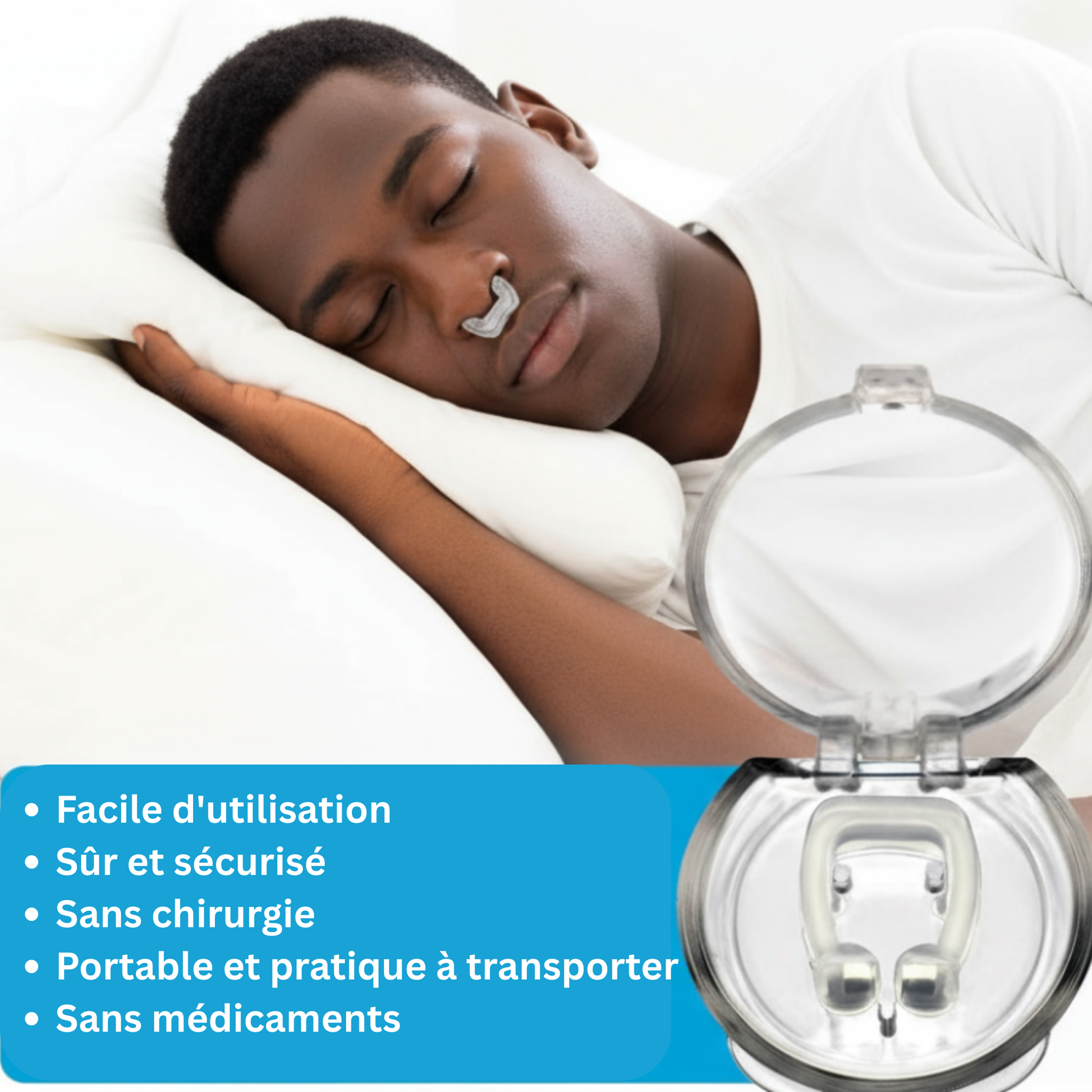 Le clip Anti-Ronflement Magnétique Réutilisable vous aide à mieux respirer, mieux dormir et mieux récupérer. Il transforme vos nuits sans effort, naturellement.